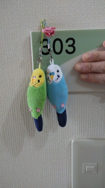 訪問してるある施設で、お部屋の前にこんな可愛いインコ達が。